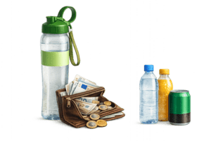 Eine Trinkflasche dabei zu haben spart Geld und macht dich unabhängiger.