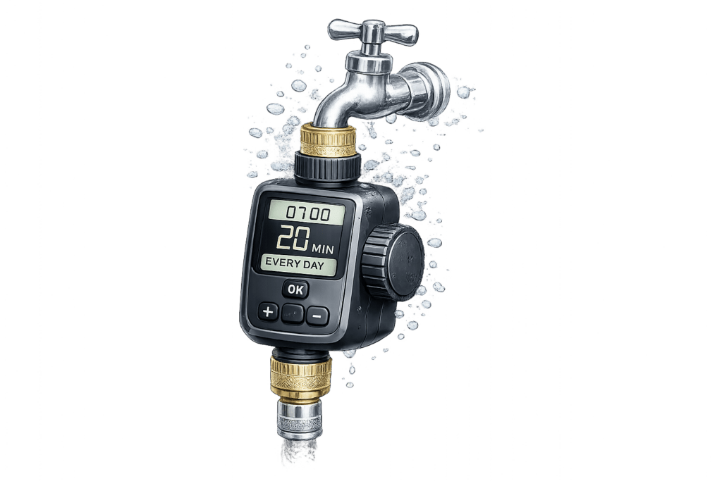 Steuert die Bewässerung automatisch zu festen Zeiten und verhindert so unnötiges oder vergessenes Gießen.